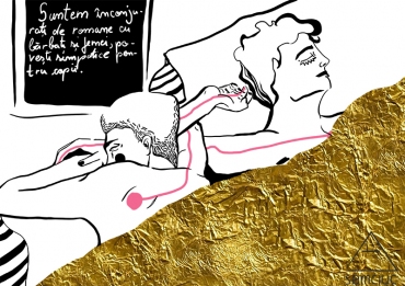 B: Ah, și nu mai zic de nopți. Cristi voia să mă ia în brațe, ceea ce e super drăguț în teorie, dar e foarte inconfortabil. Adică eu nu puteam să dorm decât dezlipindu-mă de el.