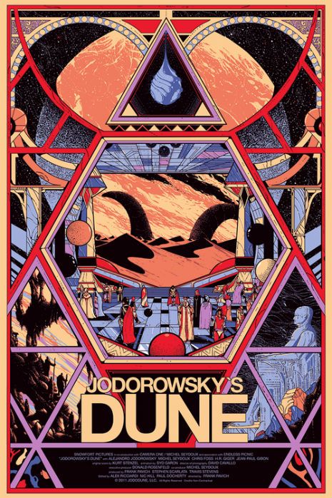 După ce am revăzut Dune al lui Lynch (la Dracula Film Festival), imediat am tras cu ochiul în mintea domnului Jodorowsky și mare minunăție mi s-a înfățișat în fața ochilor! Povestea lui „ce-ar fi fost dacă”, istoria unuia dintre cele mai mari filme nefăcute, e concepută de Pavich pornind de la un storyboard realizat de Jean Giraud aka Moebius, cu care Jodorowsky și producătorul Seydoux au pornit în căutarea finanțatorilor.