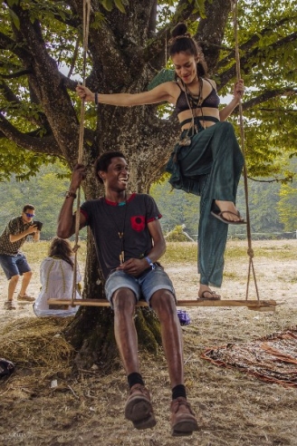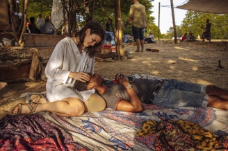E barmanul pe care îl știi din fostul Control, care îți dă mereu câte un pahar plin de gheață, ca să faci față arșiței. E Sasha, care îți pune o porție imensă de paste la cel mai hip loc de unde să-ți iei de mâncare, și-ți umple o farfurie de caise când ceri un fruct la pachet. E una dintre prietenele pe care le iubești cel mai mult, care îți împrumută bățul ei cu panglică albastră, să desenezi spirale de mătase în aer. E fata aia super cool de la petreceri, care are whisky într-o botelcuță și îl împarte cu tine. Prietenul tău introvertit care te ia de mână și te duce în primul rând la scena de psy, unde țineți ritmul infernal cu tot corpul. Băiatul pe care îl știi de o viață, din Fire, cu care nu ai mai vorbit niciodată, dar care se așază pe o căpiță lângă tine acum și te invită să vii oricând la el în vizită, la Barcelona. Cuplul superb, ea în rochie de mireasă, care te invită la nunta lor de zi de la psy. Prietena ta care pune muzică la chill și te strecori în spatele ei și o săruți pe umăr. Fata norilor, care te îmbrățisează.